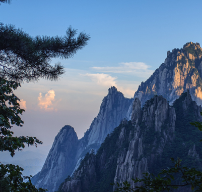 遙望天都倚客松,蓮花始信兩飛峰。且持夢筆書奇景,日破云濤萬里紅。